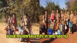 นางงามต้องชิดซ้าย เด็กนักเรียนชายเเต่งชุดลูกเสือลากกระเป๋ามาเข้าค่าย โพสต์ท่าลีลาสุดเเซ่บ