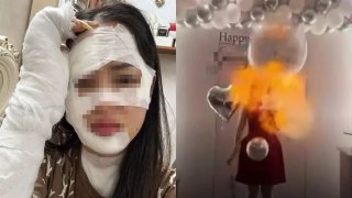 หญิงสาวถูกไฟไหม้หน้าอย่างรุนแรง หลังจากลูกโป่งวันเกิดที่ระเบิดใส่