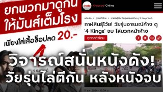 หลังมีข่าว วัยรุ่นกาฬสินธุ์ ไล่ตีกันหน้าห้างดังฯ หลังดูภาพยนตร์ 4 KINGS อาชีวะ ยุค 90 จบ วิจารณ์สนั่นเมื่อเพจหนังดัง เอาจิงดิ? ใครคิดแคมเปญอันนี้เนี่ย เหมือนส่งเสริมยกย่องวัฒนธรรมการตีกันระหว่างสถาบันเลย . เอาจริงๆ ถ้าให้ผู้กองมองในมุมอาชญาวิทยา มันไม่โอเคเลย กับแคมเปญแนวนี้ ถ้าเล่าเรื่องแนวสารคดียังโอเคอยู่ แต่แคมเปญนี้ ไม่ไหว และโพสต์ล่าสุด ... จากโพสต์ก่อนหน้านี้! ว่าแล้วต้องเกิดเหตุการณ์แบบนี.. ดูเพิ่ม