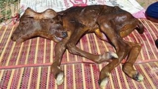 ฮือฮา ! วัวตกลูกมามี 2 หัว 4 หู 4 ตา 4 ขา คอหวยแห่ตีเลข