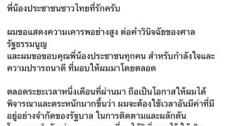 พล.อ. ประยุทธ์ โพสต์เฟซบุ๊ก… ผมขอแสดงความเคารพอย่างสูง ต่อคำวินิจฉัยของศาลรัฐธรรมนูญ และผมขอขอบคุณพี่น้องประชาชนทุกคน สำหรับกำลังใจและความปรารถนาดี ที่มอบให้ผมมาโดยตลอด "วันนี้เราเดินหน้ามาไกลและถูกทิศทางแล้วครับ เราต้องช่วยกันทำให้เสร็จครับ" ดูเพิ่ม