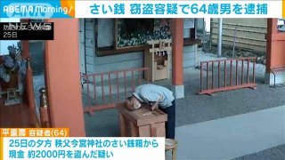 จับชายวัย 64 ปี ขโมยเงินจากตู้บริจาค ที่ศาลเจ้า