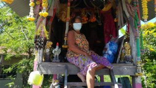 "ป้าแหวว" ชาวบางระกำ น้ำท่วมบ้านมาขอพึ่งอาศัย "ศาลเจ้าแม่มะลิวัลย์" อยู่อาศัย