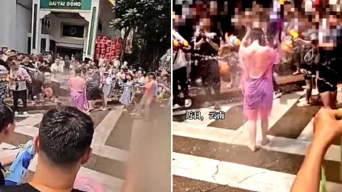 คนจีนเล่นสงกรานต์ รุมฉีดน้ำสาว ก่อนล่วงละเมิดทางเพศ