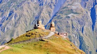 ใกล้หมู่บ้าน Gergeti นอกเมือง Stephantsminda ในจอร์เจียมีโบสถ์ Gergeti Trinity ที่โดดเดี่ยว เรียกอีกอย่างว่าโบสถ์โฮลีทรินิตี้ตั้งอยู่บนยอดเขาใกล้กับภูเขาคาซเบกีซึ่งเป็นยอดเขาที่สูงที่สุดและสวยงามที่สุดแห่งหนึ่งของเทือกเขาคอเคซัสที่ความสูง 2170 เมตร คริสตจักรออร์โธดอกซ์จอร์เจียและอัครสาวกในศตวรรษที่ 14 เป็นจุดอ้างอิงยอดนิยมสำหรับนักเดินป่าในพื้นที่และสามารถเข้าถึงได้โดยการปีนเขาที่สูงชันเป็นเวลา 3 .. ดูเพิ่ม