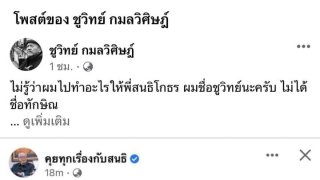 ศึกเดือด.!!! “#สนธิ ลิ้มทองกุล” โพสต์ผ่านเพจ คุยทุกเรื่องกับสนธิ ตัดขาด ชูวิทย์ ต่อไปนี้เป็นศัตรูกัน พร้อมแฉ พรุ่งนี้ 09:00 น. ด้าน #ชูวิทย์ บอกแฉมา แฉกลับ ชาวเน็ตบอกพร้อมกินป๊อบคอร์นรอ ด้านทางคุณชูวิทย์ ได้โพสตอบดังนี้.. ไม่รู้ว่าผมไปทำอะไรให้พี่สนธิโกธร ผมชื่อชูวิทย์นะครับ ไม่ได้ชื่อทักษิณ ตอนผมพูดเรื่อง “พนันออนไลน์” พี่ชมผมได้ชมผมดี เอาเรื่องที่ผมพูดไปขยายต่อเป็นฉากๆ แ.. ดูเพิ่ม