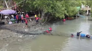 เพจเฟซบุ๊ก ดาวแปดแฉก ได้โพสต์คลิปและข้อความถึงเรื่องราวของตำรวจน้ำที่ร่วมกันลงแขกเพื่อจับปลาหมอคางดำโดยมีข้อความดังนี้ . ตำรวจน้ำ 20 นาย ลงแขก ลงคลอง จับปลาหมอคางดำ ร่วมทำกับข้าวแจกชาวบ้าน บริเวณแหล่งน้ำบริเวณศาลพันท้ายนรสิงห์ ต.พันท้ายนรสิงห์ อ.เมือง จ.สมุทรสาคร โดยใช้อ้วนล้อมจำนวน 3 จุด ซึ่งปลาที่จับได้นำไปจำหน่าย ซึ่งมีแพปลาในพื้นที่รับซื้อปลาหมอคางดำ ในราคากิโลกรัมละ 15 บาท และอีกส่วนนำมาปรุง.. ดูเพิ่ม