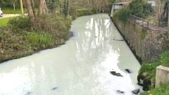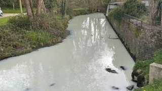 แม่น้ำสายหนึ่งในแคว้นเวลส์ ของสหราชอาณาจักร กลายเป็นสีขาวบริสุทธิ์ไม่ต่างจากน้ำนม หลังรถบรรทุกน้ำนมพลิกคว่ำ นมจำนวนมากไหลลงแม่น้ำ