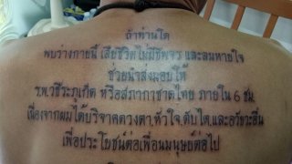 สุดยอด!! หนุ่มสักกลางหลัง ถึงเจตนารมย์ที่จะบริจาคร่างกาย หากใครพบร่างตนยามสิ้นลม