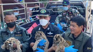 จับได้อีกแล้วพวกลักลอบค่าสัตว์ป่า รวบผู้ต้องหา 1 ราย พร้อมของกลาง ลูกเสือโคร่งน้อย 4 ตัว