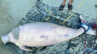 ชาวประมงทุบฉลามวาฬด้วยค้อนก่อนโยนลงทะเล