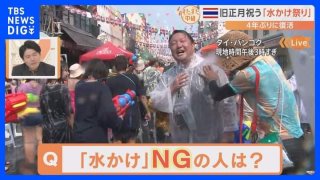 สำนักข่าวญี่ปุ่น🇯🇵 เสนอข่าวสงกรานต์ในประเทศไทย พร้อมกับร่วมสนุกไปกับการร่วมเล่นน้ำอย่างครึกครื้น 🔫พลังแห่ง soft power ของวัฒนธรรมไทยในสายตาชาวโลก 💦🇹🇭 ถือเป็นเทศกาลที่สนุกสนานอย่างมากกับสงกรานต์ประเทศไทย ที่ทำเอานักท่องเที่ยวทั่วโลกต่างแห่กันมาเพื่อร่วมสนุก เล่นน้ำกันอย่างสนุกสนานโดยไม่จำกัดเชื้อชาติ สนุกสนานมากๆเลยทีเดียว タイ・バンコクで4年ぶりに復活!旧正月を祝う伝統行事「水かけ祭り」を体験!【すたすた中継】|TBS NEWS DIG . คลิปวีดีโอ ดูเพิ่ม