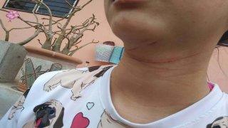 หวิดดับ สายไฟสื่อสาร เกี่ยวคอสาวขี่มอเตอร์ไซค์ล้ม หาคนรับผิดชอบไม่มี