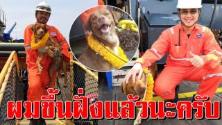 ยิ้มหน้าบาน เจ้าตูบบุญรอดขึ้นฝั่งแล้ว มีพวงมาลัยคล้องคอต้อนรับอบอุ่น น่ารักสุดๆ