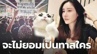 แตงโม นิดา โพสต์ภาพร่วมชุมนุม ชูป้ายกลางม๊อบ “ไม่ยอมเป็นทาสใคร ยกเว้น “ทาสแมว”