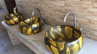 นับว่าเป็นไอเดียสุดเก๋ของการออกแบบอ้างล้างมือมากที่ทำเป็นเหมือนงูเหลือมยักษ์ขดตัวอยู่ แต่ว่ามันเหมือนเกินไปน่ะสิ เห็นแล้วอดผวาไม่ได้ คนกลัวงูคงไม่กล้าเข้าใกล้แน่นอน อาจจะเป็นแผนของคนสร้างที่ต้องการให้ประหยัดน้ำก็ได้นะ ดูเพิ่ม