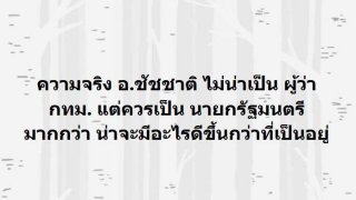 หลังจากที่ท่านผู้ว่าฯชัชชาติ ขึ้นรับตำแหน่ง ก็ทำให้เห็นผลงานมากมาย ที่ทั้งรวดเร็วทันใจ และงานดีสุดๆ และล่าสุด ส.ส.เต้ ได้ออกมาพูดถึง ผู้ว่าฯ ชัชชาติด้วย โดยระบุว่า... "ความจริง อ.ชัชชาติ ไม่น่าเป็น ผู้ว่า กทม. แต่ควรเป็น นายกรัฐมนตรี มากกว่า น่าจะมีอะไรดีขึ้นกว่าที่เป็นอยู่" ภาพ ดูเพิ่ม