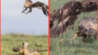 เหตุการณ์ระทึกแม่หมาจิ้งจอกJACKAL ช่วยชีวิตลูกสุนัขของมัน หลังจากถูกนกอินทรีจับไปอย่างสิ้นหวัง