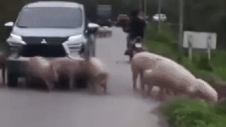 คลิปที่กำลังเป็นไวรัลในตอนนี้ คือ คลิปที่ชายคนหนึ่งถ่ายเอาไว้ได้ ในเมืองฝูซวี่เยน กรุงฮานอย ประเทศเวียดนาม จากในคลิปจะเห็นว่าหมูฝูงเล็กฝูงหนึ่ง กำลังเดินข้ามถนนเล็กๆเส้นหนึ่ง แต่แล้วรถเก๋งคันหนึ่ง ก็ขับชนหมู 2 ตัว ส่งผลทำให้หมูกรีดร้อง หมุนติ้วๆอยู่ใต้ท้องรถ ด้วยหัวของหมูตัวหนึ่งถูกล้อทับหลายครั้ง ... เจ้าของหมูกล่าวว่า "เนื่องจากระดับน้ำรอบๆฟาร์มหมูเพิ่มขึ้น ผมจำเป็นต้องพาหมูเดินเท้าไปยังที่ปลอด.. ดูเพิ่ม