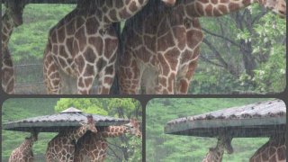 ภาพน่ารักๆของยีราฟพากันยืนหลบฝนในร่ม แต่ดันหลบฝนได้แค่ตัว...