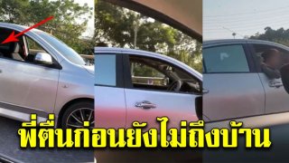 หนุ่มขับรถบรรทุกเผลอหลับขณะรถติดไฟแดง ดีที่ป้าขายพวงมาลัยมาปลุก ไม่งั้นยาว