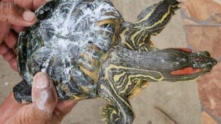 11 มิ.ย.67 ที่บ้านดวนใหญ่ ตำบลดวนใหญ่ อำเภอวังหิน จังหวัดศรีสะเกษ ชาวบ้านต่างมามุงดูกัน เมื่อเจ้าของบ้านไปหว่านแหที่หนองตาหวา แล้วได้เต่าประหลาดตัวนี้มาจึงนำมาเลี้ยงที่บ้าน สำหรับเต่าประหลาดตัวนี้ มีลำตัวลายเป็นสีเหลือง-เขียวเหมือนงูปลา ตรงหัวเต่ามีเส้นแดงเหมือนเป็นคิ้ว 2 เส้น และกระดองเต่ายุบเป็นแฉก ๆ 8 เส้น คล้ายดาวกระจาย ชาวบ้านจึงนำแป้งมาทามาลูบตามลำตัวเพื่อหาตัวเลขและนำไปเสี่ยงโชคกัน เลขที่ไ.. ดูเพิ่ม
