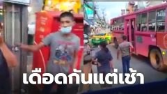 หนุ่มหัวร้อนจับหัวคนขับรถบัสกระแทกรถ