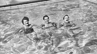 ฤดูร้อนของออสเตรเลียในทศวรรษที่ 1940 ผู้หญิงขี้เล่นริมทะเล