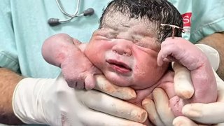เด็กน้อยคลอดจากท้องแม่ ถือห่วงอนามัยติดมือมาด้วย