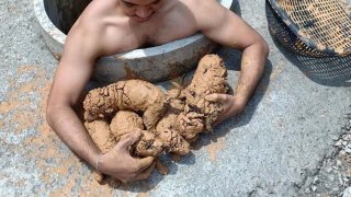 หนุ่มใจหล่อ ลงไปช่วยฝูงลูกสุนัขตกบ่อโคลน บอกเห็นตอนแรกนึกว่าก้อนหิน