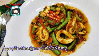 ปลาหมึกผัดพริกแกงใส่ถั่วฝักยาว