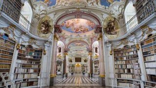 Admont Abbey ใน Admont ประเทศออสเตรียมีห้องสมุดสงฆ์ที่ใหญ่ที่สุดในโลกรวมถึงคอลเล็กชันทางวิทยาศาสตร์ที่ใหญ่ที่สุด Abbey ก่อตั้งโดยอาร์ชบิชอปเกบฮาร์ดแห่งซาลซ์บูร์กในปีค. ศ. 1074 แต่ไม่ได้สร้างห้องสมุดจนถึงปี 1776 โดยสถาปนิกโจเซฟฮิวเบอร์ ขนาดที่น่าทึ่งของห้องสมุดคือ 70 เมตรกว้าง 14 เมตรและสูงกว่า 13 เมตร (230x46x43 ฟุต)! สร้างขึ้นในสไตล์บาร็อคตอนปลายที่มีชื่อเสียงและพอดีกับรูปแกะสลักของประติมากร Jos.. ดูเพิ่ม
