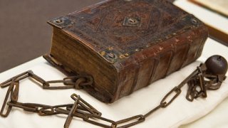 ก่อนที่แท่นพิมพ์จะทำให้หนังสือมีราคาถูกและหาได้ง่ายหนังสือในยุคกลางนั้นหายากและล้ำค่า หากไม่มีวิธีการผลิตจำนวนมากหนังสือแต่ละเล่มต้องคัดลอกด้วยมืออย่างระมัดระวังซึ่งใช้เวลาหลายพันชั่วโมงในการทำงานที่มีทักษะ ในช่วงยุคกลางต่อมาเมื่อมีห้องสมุดที่เข้าถึงได้โดยสาธารณะหนังสือมักถูกผูกมัดกับชั้นวางเพื่อให้ประชาชนอ่านได้ในขณะเดียวกันก็ปกป้องคอลเล็กชันที่มีค่าของห้องสมุดจากผู้ร้ายที่อาจเกิดขึ้น โซ่ถูกติดตั.. ดูเพิ่ม