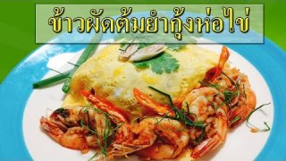 ข้าวผัดต้มยำกุ้งห่อไข่เครื่องปรุงและวัตถุดิบ 1.ข้าวสวย 2.กุ้ง 3.พริกเผา 4.ตะไคร้ซอย ใบมะกรูดซอย ผักชีฝรั่งซอย มะเขือเทศ ต้นหอมซอย พริกหั่นแฉลบ มะนาว 5.น้ำตาล 6.น้ำปลา 7.น้ำมัน 8.ไข่ไก่ 9.นมสดวิธีทำ 1.ผัดตะไคร้ พริก น้ำพริกเผา ให้หอม 2.ใส่กุ้ง ตามด้วยข้าว ผัดให้เข้ากัน 3.ใส่ผักในจานให้หมด 4.ปรุงรสด้วย น้ำตาล น้ำปลา มะนาว 5.ตักใส่จาน พักไว้ 6.ผสมไข่ไก่กับนมเพื่อทำไข่ราดหน้า 7.น้ำมันร้อนใส่ไข่ลงไป กะ.. ดูเพิ่ม