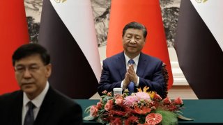 ประธานาธิบดีจีน สี จิ้นผิง ปรบมือระหว่างพิธีลงนามร่วมกับประธานาธิบดีอียิปต์ อับเดล ฟัตตาห์ อัล-ซิซี ที่หอประชุมใหญ่แห่งประชาชนในกรุงปักกิ่ง ประเทศจีน เมื่อวันที่ 29 พฤษภาคม 2024 [เครดิต: Tingshu Wang/Pool via Reuters] ประธานาธิบดีจีน สี จิ้นผิง มีกำหนดการกล่าวปราศรัยต่อผู้นำและนักการทูตของอาหรับในงานประชุมที่กรุงปักกิ่งในวันนี้ ซึ่ง สี จิ้นผิง จะเรียกร้องให้มีการใช้ "เสียงส่วนรวม"เรื่องความขัดแย้.. ดูเพิ่ม