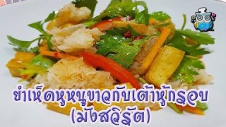ยำเห็ดหูหนูขาวกับเต้าหู้กรอบ มังสวิรัต
