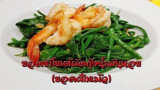 ยอดซาโยเต้ผัดกุ้งสดน้ำมันหอย (ยอดฝักแม้ว)