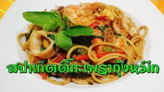ผัดสปาเก็ตตี้กะเพรากุ้งหมึก