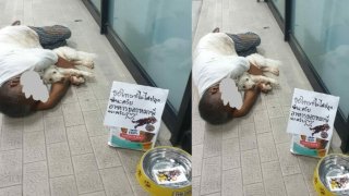 อ่านแล้วใจฟูมาก หนุ่มเอาอาหารไปให้สุนัข ‘ชายเร่ร่อน’ พร้อมเขียนป้ายบอกเพราะไม่กล้าปลุก