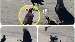 สุดยอดวีรกรรม..แม่นกที่ปกป้องลูกนกจากอีกา 2 ตัวที่จะมาทำร้ายลูกของมัน
