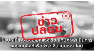 ข่าวปลอม ‼️ ไปรษณีย์ไทย ส่งอีเมลแจ้งเรียกเก็บค่าดำเนินการ และแนบลิงก์เพื่อชำระเงินแบบออนไลน์