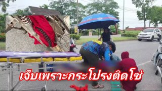 ผัวเมียขี่จยย.เที่ยววันฮารีรายอ กระโปรงติดโซ่ รถจยยพลิกคว่ำเจ็บทั้ง 2