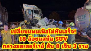 เปลี่ยนแพมเพิสไม่ทันเสร็จ! 18 ล้อชนสนั่น SUV กลางมอเตอร์เวย์ ดับ 8 เจ็บ 3 ราย