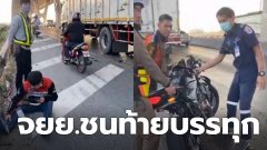 ลากไกลเกือบ 200เมตร รถบรรทุกชน จยย.ลากทั้งคนทั้งรถ