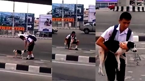ใจน้องหล่อมาก อุ้มหมาข้ามทาง..... 👍❤️ #หล่อมาก #ใจหล่อมาก #สุด เป็นภาพที่สร้างความประทับใจให้กับผู้คนที่ผ่านไปมาเป็นอย่างมาก เมื่อสมาชิกเฟซบุ๊ก Prapaporn Yamfang ได้โพสต์คลิปวิดีโอเหตุการณ์ขณะเด็กนักเรียนชายคนหนึ่ง ลงไปอุ้มช่วยเหลือสุนัขที่ติดอยู่บริเวณเกาะกลางถนนแล้วพาข้ามกลับมายังอีกฝั่งที่ไม่มีรถสัญจรไปมา เพราะเกิดความเกรงกลัวว่าสุนัขตัวดังกล่าวจะได้รับอันตราย ................................... ดูเพิ่ม
