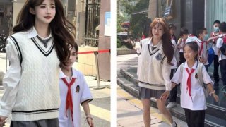 ชาวบ้านทึ่ง!! คุณแม่ลูกสองวัย 38 พาลูกสาวไปโรงเรียน
