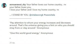 กลายเป็นที่พูดถึงอีกแล้วจ้า เมื่อล่าสุด อ้น สราวุธ ได้ออกมาโพสต์ภาพในไอจี ของ ลูกหนัง ศีตลา พร้อมข้อความว่า... Your father loves our home country , 🇹🇭 your father loves you. I love your father and I love my home country, 🇹🇭 I STAND BY YOU. @sitalawongk #savesitala ความหมายก็คือ พ่อของเธอรักประเทศบ้านเกิดของเรา พ่อของเธอรักเธอ ฉันรักพ่อของเธอ และรักประเทศบ้านเกิดของเรา ฉันอยู่ข้างเธอ ภาพ ดูเพิ่ม