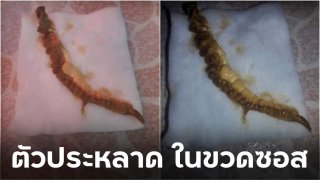 อ๊วกพุ่ง !! สาวเจอตัวประหลาด ในขวดซอสหอยนางรม