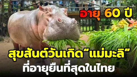 สุขสันต์วันเกิด “แม่มะลิ” ฮิปโปโปเตมัสขวัญใจชาวไทย อายุครบ 60 ปี ฮิปโปที่อายุยืนที่สุดในประเทศไทย