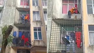 นาทีระทึก!! ชายเสี่ยงชีวิตปีนชั้น 4 เพื่อช่วยเด็กชายที่ติดอยู่ บนขอบหน้าต่าง
